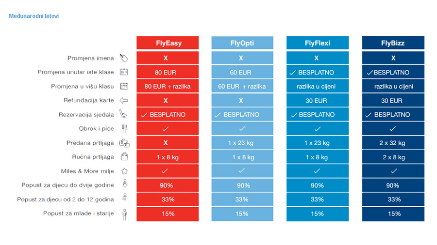- Ukoliko kupite kartu po FlyOpti, FlyFlexi ili FlyBiz tarifi i dalje imate uključenu prtljagu u cijeni karte, znači pazite koju tarifu ste kupili i da li sada vaša tarifa uključuje predanu prtljagu ili ne.