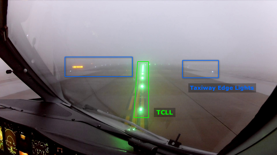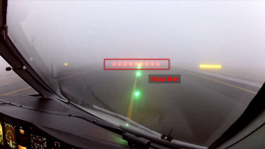 Duž oba ruba staze se nalaze Runway Edge Lights (REDL), dok se niz njenu središnjicu protežu Runway Center Line Lights (RCLL), a s obje strane potonjih i Runway Touchdown Zone Lights (RTZL) u duljini od 900 metara koja označavaju područje u kojem zrakoplov treba dotaknuti stazu (kad su svjetla ugašena, to područje je označeno bijelim pravokutnicima nacrtanim na samoj površini). „Štos” je što su razmaci između svjetala iste vrste propisani međunarodnim standardima: u ovom slučaju je razmak između uzastopnih REDL svjetala 60 metara, a uzastopnih RCLL 15 metara čime se jednostavnom matematikom može na licu mjesta procijeniti stvarna vidljivost (~ 350 m u ovom slučaju).