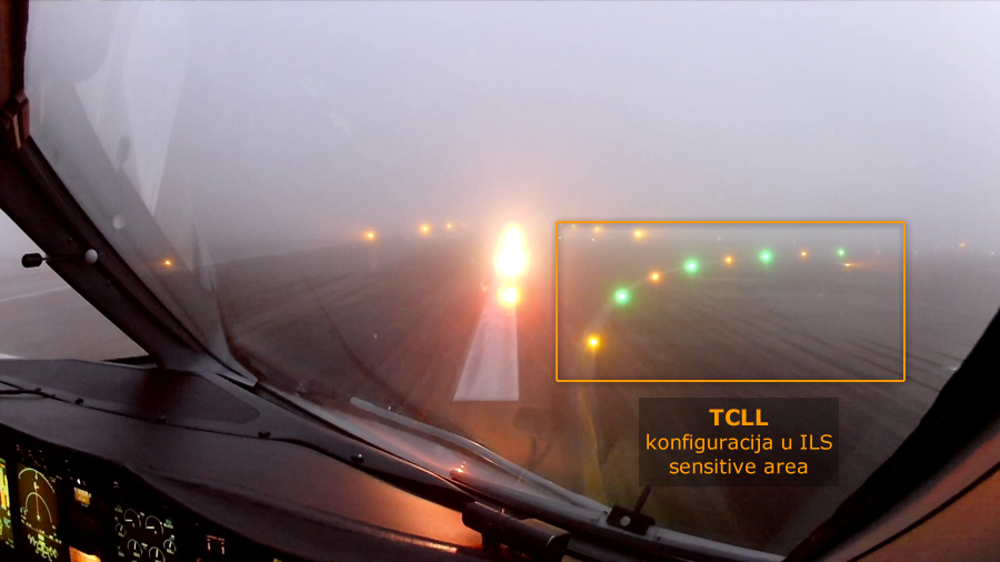 Na ulazima i izlazima sa staza koje su opremljene najvišim kategorijama instrumentalnih prilaza (ILS CAT II i III), TCLL su naizmjenično žuto-zelena, što je posadama indikacija da ulaze/izlaze/nalaze se u kritičnoj zaštitnoj zoni ILS-a gdje trup zrakoplova može ometati i degradirati radijski snop koji pruža horizontalno vođenje na prilazu (tj. localiser).