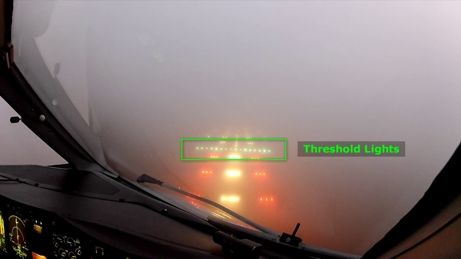 Prvi svjetlosni sustav same staze su Threshold Lights, red zelenih svjetala koji označava gdje počinje dio staze iskoristiv za slijetanje.