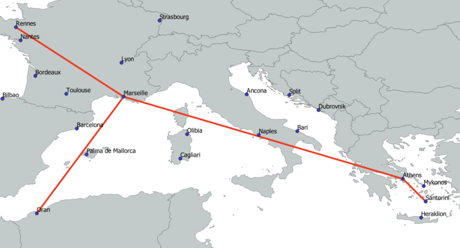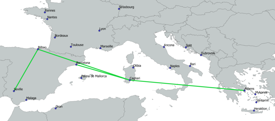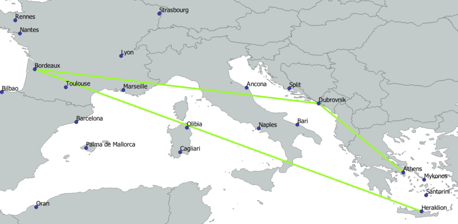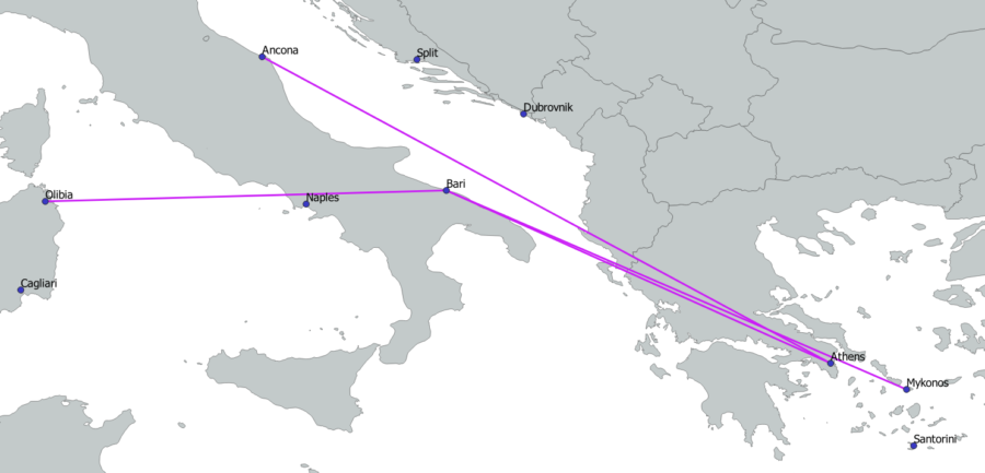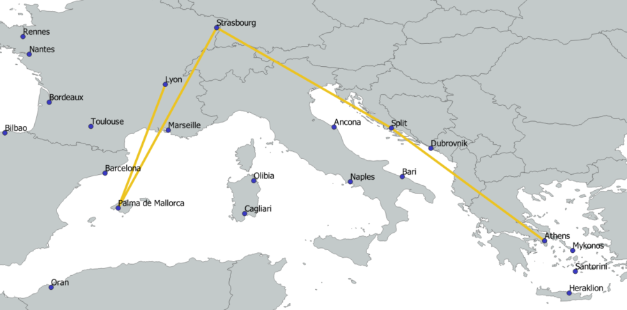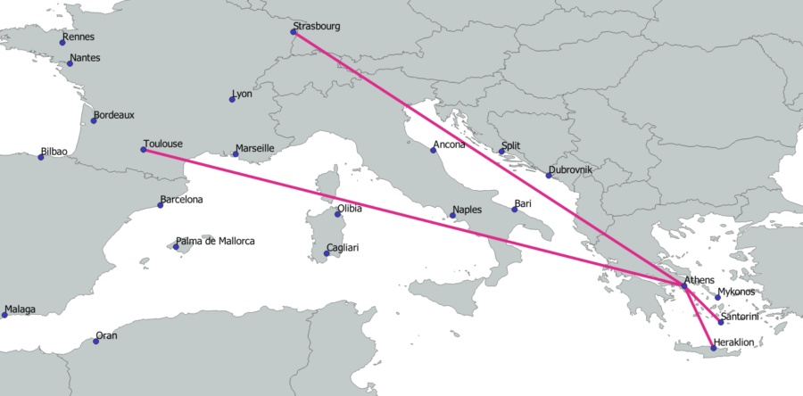 Volotea employs an intriguing strategy where planes from other bases operate flights from various cities to Athens, facilitating better connections without the need to base additional aircraft in Athens. For example, a plane from Strasbourg flies to Split, then to Athens instead of returning directly to Strasbourg, and back to Split before finally returning to its base in Strasbourg. Similarly, a plane based in Bordeaux flies to Dubrovnik, then to Athens and back to Dubrovnik before returning to Bordeaux. This strategy allows Volotea to increase the number of routes to and from Split and Dubrovnik without needing to station aircraft at these airports.