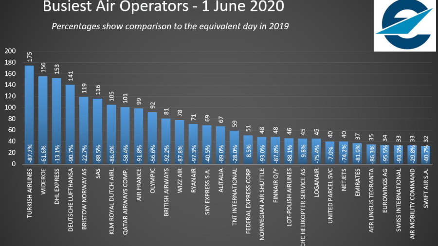 Eurocontrol also published data for June 1, 2019 and 2019 by carriers, which shows that Turkish Airlines is recording the re-establishment of flights on domestic routes.