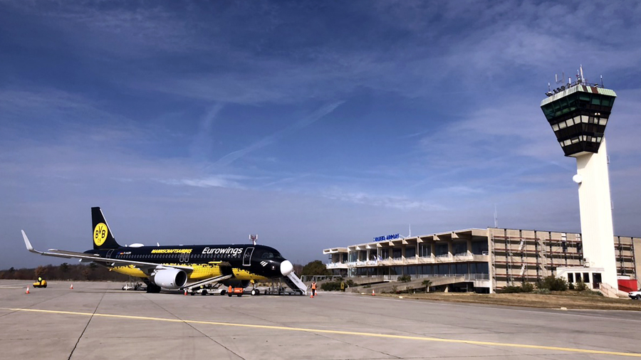 Na redovitoj liniji Eurowingsa (EW/EWG) iz Düsseldrofa u Rijeku doletio je 21. veljače zrakoplov Airbus A320 u posebnom bojanju s oznakama nogometnog kluba Borussia Dortmund.