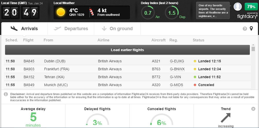 Najveća europska zračna luka po broju putnika Heathrow (LHR/EGLL) u Londonu već drugi san muku muči sa maglom, koji je prekrio London i okolicu. Zračna luka Heathrow, gdje je svaki slot vrlo dragocjen, jer je kapacitet kretanja zrakoplova na maksimalnoj granici (98%), primorana je dakle da radi smanjene vidljivosti glede magle produži intervale kretanja zrakoplova na polijetanju i slijetanju, pa tako ne može primiti sve operacije. Od ukupno 1300 planiranih letova jučer i danas oko 100 letova dnevno je moralo biti otkazano. Prema podacima Flightradara24, otkazano je oko 6% svih letova. Zračna luka Heathrow poziva sve putnike da se informiraju o svom letu prije polaska na zračnu luku.