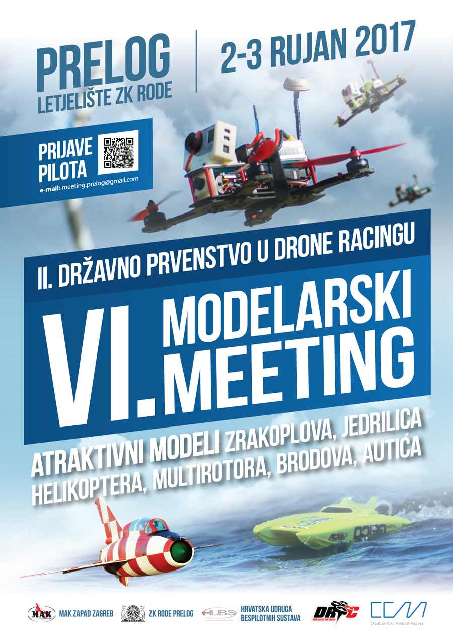 I ove godine, u suradnji sa modelarskim aeroklubom “Zapad“ iz Zagreba, zmajarskim klubom “Rode“ iz Preloga, ekipom “Drone Racing Team Croatia“, te uz pokroviteljstvo Hrvatske agencije za civilno zrakoplovstvo, kao središnje državne institucije zadužene za stvaranje adekvatnog regulatornog okvira za sigurno odvijanje letačkih operacija, organiziramo sada već drugo prvenstvo Hrvatske u utrci dronova, koje će se održati na modelarskom aeromitingu u Prelogu, 2. i 3. rujna 2017. Natjecanje je otvorenog tipa, što znači da očekujemo natjecatelje iz Hrvatske i susjednih zemalja, jaku konkurenciju i zanimljive utrke pune adrenalina i viška dijelova!
