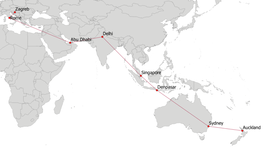 Samo za usporedbu, ako se na isti dan ide iz Zagreba s nekim od klasičnih prijevoznika, najbrže putovanje je s Qatar Airwaysom. Putuje se s presjedanjem u Dohi (Zagreb – Doha – Auckland), a samo putovanje traje 25 sati i 15 minuta. Polazak je iz Zagreba u subotu 2. 12. 2023. u 15:45, a dolazak u Auckland je u ponedjeljak 4. 12. 2023. u 5:00.