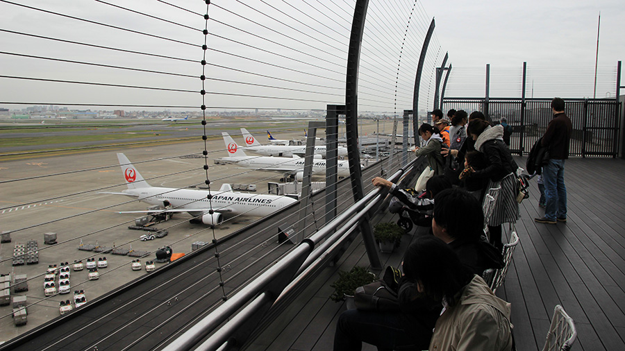 Aerodrom Haneda u Tokyu ima 3 terase za sve one koji žele ispratiti svoje najmilije koji odlaze na put, žele uživati u polijetanjima i slijetanjima aviona ili ih žele fotografirati. Terase imaju natrkriveni i otvoreni dio. Ograda terase je žičana mreža, ali sa dovoljno velikim otvorima da je moguće progurati objektiv fotoaparata i neometano fotografirati. Da bi ušli na terasu nije potrebno prolaziti sigurnosni pregled, također je bitno spomenuti ulaz je besplatan. Ukoliko se želite osvježiti, samo se vratite u terminal, kupite nešto i nastavite uživanje u zrakoplovima.