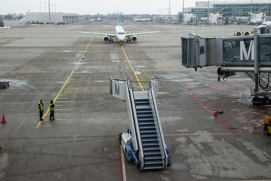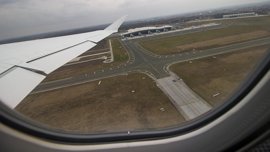 Uskoro je započelo ukrcavanje. Zrakoplov je bio solidno popunjen, vidio sam tek nekoliko praznih sjedala. Posada nam se ispričavala, kasnili su jer se morao zbog laganog snijega u Münchenu odraditi deicing te se dugo čekalo na red. Prezentirano nam je što moramo napraviti u slučaju neželjenih situacija. Po običaju, mislim da većina ljudi nije pratila što su nam objašnjavali, rekao bih da je svima to dosadnjikavo slušati. Uskoro smo poletjeli i sad se lijepo vidio terminal. Moj suputnik na sjedalu do mojeg išao je za Stockholm, dobar dio puta je prespavao, umor ga svladao.