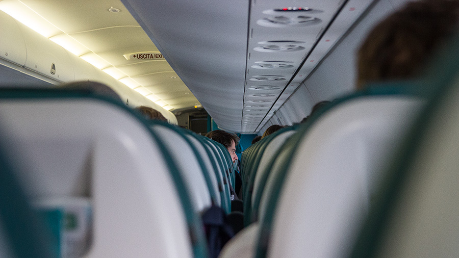 No, odmaknimo se malo od teme hrane i pogledajmo što ima u pogledu kroz prostor između sjedala. Moram priznati da mi je zanimljivo vidjeti taj prolaz, često mi je i motiv za fotografiranje. Možete vidjeti kako u zrakoplovu dominira tamnija zelena boja, koja vas odmah podsjeti na Italiju. Njihove željeznice koriste sličnu boju za bojanje većine svojih vlakova.