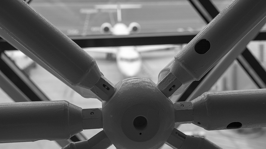 Ovi naši pametni telefoni su super, a tek aplikacije na kojima možeš vidjeti gdje ti je zrakoplov i kada stiže. Primjetio sam da moj zrakoplov kasni u dolasku u Zagreb što će, naravno, značiti i da ćemo kasniti u polasku. Eto, uskoro se i na ekranima pojavilo: polazak za München se pomiče za 20 minuta. No, nema mjesta panici, za presjedanje u Münchenu imam 1:45 h, tako da i s tim malim kašnjenjem imat ću dovoljno vremena između letova. Uskoro je došao i taj moj zrakoplov iz Münchena, Lufthansin Bombardier CRJ900. Morao sam iskoristiti priliku i ukomponirati na fotografiji zrakoplov i rešetke na aerodromu.