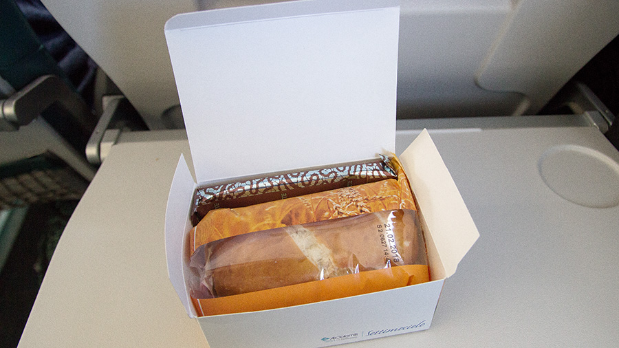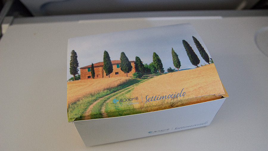 Došlo je i vrijeme za hranu i piće. Ono što me opet oduševilo jest pakiranje koje Air Dolomiti daje svojim putnicima. Stvarno izgleda zanimljivo te kod putnika izaziva znatiželju čim prije otvoriti kutijicu i vidjeti što je u njoj.