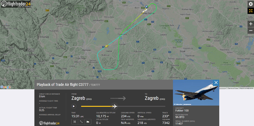 – Zrakoplov: Fokker 100 (9A-BTD)