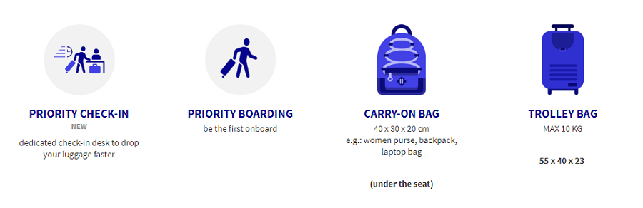 Sa BASIC tarifom sada možete u putničku kabinu unositi samo na manji komad ručne prtljage dimenzija 40 x 30 x 20 cm. To je veličina manjeg ruksaka ili ženske torbe. U kabini zrakoplova nakon što se se smjestili na svoje sjedalo svoju ručnu prtljagu morate smjestiti ispod sjedala ispred vas.